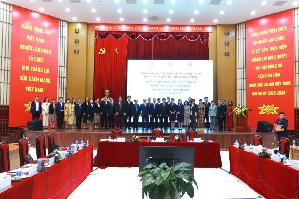 ໃນວັນທີ 17 ພະຈິກ 2025 ທີ່ຜ່ານມາ, ທ່ານ ໄຊສົງຄາມ ມະໂນທັມ ຄະນະປະຈໍາພັກ, ຮອງປະທານສະຖາບັນວິທະຍາສາດເສດຖະກິດ ແລະ ສັງຄົມແຫ່ງຊາດ ໄດ້ນໍາພາຄະນະຜູ້ແທນສະຖາບັນວິທະຍາສາດເສດຖະກິດ ແລະ ສັງຄົມແຫ່ງຊາດ ເຂົ້າຮ່ວມກອງປະຊຸມສໍາມະນາວິທະຍາສາດສາກົນສັງຄົມນິຍົມ ຄັ້ງທີ XII ພາຍໃຕ້ຫົວຂໍ້ “ການບໍລິຫານລັດສັງຄົມນີຍົມໃນສະພາບການຍຸກໃໝ່” ທີ່ນະຄອນຫຼວງຮ່າໂນ້ຍ ສສ.ຫວຽດນາມ ໂດຍການເປັນເຈົ້າພາບຂອງສະຖາບັນບັນດິດວິທະຍາສາດສັງຄົມຫວຽດນາມ; ປະທານກອງປະຊຸມຮ່ວມຄັ້ງນີ້ມີ ທ່ານ ປອ. ດັ່ງ ຊວັ່ນແທ່ງ (Dang Xuan Thanh) ຮອງປະທານສະຖາບັນບັນດິດວິທະຍາສາດສັງຄົມຫວຽດນາມ (VASS), ທ່ານ ໄຊສົງຄາມ ມະໂນທັມ ຮອງປະທານສະຖາບັນວິທະຍາສາດເສດຖະກິດ ແລະ ສັງຄົມແຫ່ງຊາດ (LASES) ແລະ ທ່ານ ປອ. ໂລ້ ເວິນຕົ້ງ (Luo Wen Dong) ຮອງຫົວໜ້າສະຖາບັນຄົ້ນຄວ້າລັດທິມາກ, ສະຖາບັນບັນດິດວິທະຍາສາດສັງຄົມຈີນ (CASS) ພ້ອມດ້ວຍມີນັກວິທະຍາກອນ, ນັກສຳມະນາກອນຂອງສາມປະເທດເຂົ້າຮ່ວມ.