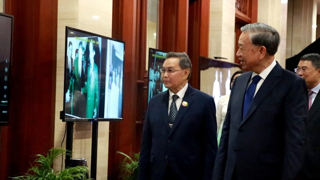 ຕອນບ່າຍຂອງວັນທີ 1 ທັນວາ 2025 ທີ່ ສະພາແຫ່ງ ຊາດ ສະຫາຍ ໄຊສົມພອນ ພົມວິຫານ ກຳມະການກົມການເມືອງສູນກາງພັກ ປະທານສະພາແຫ່ງຊາດ ແຫ່ງ ສປປ ລາວ ໄດ້ຕ້ອນຮັບ ແລະ ພົບປະກັບ ສະຫາຍ ໂຕ ເລິມ ເລຂາທິການໃຫຍ່ຄະນະບໍລິຫານງານສູນກາງພັກກອມມູນິດຫວຽດນາມ ພ້ອມດ້ວຍຄະນະຜູ້ແທນຂັ້ນສູງພັກ-ລັດ ຫວຽດນາມ ໃນໂອກາດເດີນທາງມາຢ້ຽມຢາມລັດຖະກິດ ຢູ່ ສປປ ລາວ ລະຫວ່າງວັນທີ 1-2 ທັນວາ 2025.ໃນໂອກາດນີ້ ສະຫາຍ ໄຊສົມພອນ ພົມວິຫານ ໄດ້ສະແດງຄວາມຍິນດີຕ້ອນຮັບອັນອົບອຸ່ນ ມາຍັງ ສະຫາຍ ເລຂາທິການໃຫຍ່ ໂຕ ເລິມ ທີ່ໄດ້ນໍາພາຄະນະຜູ້ແທນຂັ້ນສູງຂອງ ພັກ ລັດ ແຫ່ງ ສສ ຫວຽດນາມ ຢ້ຽມຢາມ ລັດ ຖະກິດ ຢູ່ ສປປ ລາວ ໃນຄັ້ງນີ້ ຕາມຄຳເຊື້ອເຊີນ ຂອງ ສະ ຫາຍ ເລຂາທິການໃຫຍ່ ປະທານປະເທດ ທອງລຸນ ສີສຸລິດ ພ້ອມທັງຈະເຂົ້າຮ່ວມການສະເຫຼີມສະຫຼອງວັນສະຖາ ປະນາ ສປປ ລາວ ຄົບຮອບ 50 ປີ ແລະ ການພົບປະຈໍາປີ ລະຫວ່າງ ກົມການເມືອງສູນກາງພັກຂອງສອງພັກ.