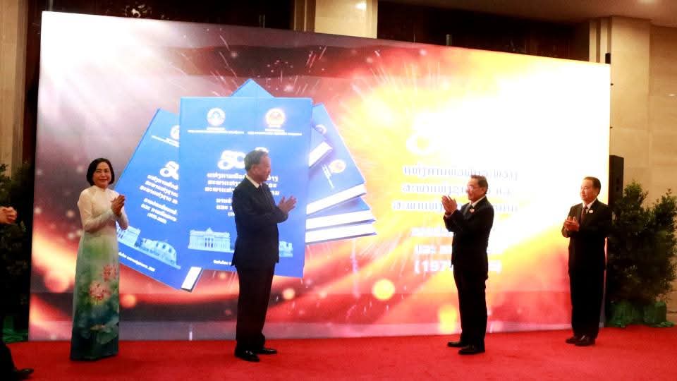 ສະຫາຍປະທານສະພາແຫ່ງຊາດລາວ ຍັງໄດ້ສະແດງຄວາມຊົມເຊີຍ ແລະ ຕີລາຄາສູງ ທີ່ ສະຫາຍ ເລຂາທິການໃຫຍ່ ໂຕ ເລິມ ໄດ້ຮັບການປະດັບຫຼຽນຄຳແຫ່ງຊາດ ຊຶ່ງເປັນຫຼຽນສູງສຸດ ຂອງ ສປປ ລາວ ເພື່ອເປັນການສະແດງຄວາມຮູ້ບຸນຄຸນຢ່າງສູງ ຕໍ່ການປະກອບສ່ວນອັນໃຫຍ່ ຫຼວງ ແລະ ສຳຄັນ ເຂົ້າໃນການເສີມຂະຫຍາຍສາຍພົວພັນພິເສດ ທີ່ມີໜຶ່ງ ບໍ່ມີສອງຢູ່ໃນໂລກນີ້ ລະຫວ່າງ ສປປ ລາວ ແລະ ສສ ຫວຽດນາມ ໃນໂອກາດພົບປະຄັ້ງນີ້ ສະ ຫາຍ ໄຊສົມພອນ ພົມວິຫານ ໄດ້ສະແດງຄວາມເສົ້າສະ ຫຼົດໃຈ ແລະ ຄວາມເຫັນໃຈຢ່າງສຸດຊຶ້ງມາຍັງປະຊາຊົນຫວຽດນາມອ້າຍນ້ອງ ທີ່ໄດ້ຮັບຜົນກະທົບຈາກໄພທໍາມະຊາດ ແລະ ມີຄວາມເຊື່ອໝັ້ນຢ່າງຍິ່ງວ່າ ບັນດາ ສະຫາຍ ຈະສາມາດຟື້ນຟູຜົນກະທົບຂອງໄພທໍາມະຊາດທີ່ຮ້າຍ ແຮງດັ່ງກ່າວ ແລະ ຈະເຮັດໃຫ້ສະພາບກັບຄືນສູ່ປົກກະຕິໂດຍໄວ.ໃນເວລາພົບປະຄັ້ງນີ້ ສະຫາຍ ເລຂາທິການໃຫຍ່ ໂຕ ເລິມ ໄດ້ສະແດງຄວາມຂອບໃຈຢ່າງຈິງໃຈ ຕໍ່ການຕ້ອນຮັບອັນອົບອຸ່ນດ້ວຍໄມຕີຈິດມິດຕະພາບຖານສະຫາຍອ້າຍນ້ອງ ຈາກສະຫາຍ ໄຊສົມພອນ ພົມວິຫານ ຮ່ວມ ກັນຕີລາຄາຜົນການຮ່ວມມືຮອບດ້ານ ລະຫວ່າງສອງຝ່າຍ ໄດ້ສະແດງຄວາມຊົມເຊີຍ ຕໍ່ບັນດາຜົນສໍາເລັດຂອງ ສປປ ລາວ ເວົ້າລວມ ເວົ້າສະເພາະ ຂອງສະພາແຫ່ງຊາດຊຸດທີ IX ຕີລາຄາສູງການພົວພັນຮ່ວມມື ລະຫວ່າງ ສອງປະເທດ ກໍຄື ລະຫວ່າງ ສອງສະພາແຫ່ງຊາດ ຫວຽດນາມ-ລາວ ທີ່ຍາດມາໄດ້ໃນຕະຫຼອດໄລຍະຜ່ານມາ ຊຶ່ງໄດ້ປະກອບສ່ວນອັນສໍາຄັນເຂົ້າໃນການເສີມຂະຫຍາຍສາຍພົວພັນ ແລະ ການຮ່ວມມືສອງຝ່າຍ ໃຫ້ນັບມື້ຈະເລີນງອກງາມ ແລະ ຂະ ຫຍາຍຕົວຍິ່ງໆຂຶ້ນ.ພາຍຫຼັງສໍາເລັດການພົບປະ ສະຫາຍ ໄຊສົມພອນ ພົມວິຫານ ປະທານສະພາແຫ່ງຊາດລາວ ແລະ ສະຫາຍ ເລຂາທິການໃຫຍ່ ໂຕ ເລິມ ພ້ອມດ້ວຍພາກສ່ວນກ່ຽວຂ້ອງທັງສອງຝ່າຍ ໄດ້ເຂົ້າຮ່ວມພິທີເປີດປຶ້ມ “50 ປີ ແຫ່ງການພົວພັນລະຫວ່າງ ສະພາແຫ່ງຊາດລາວ ແລະ ສະພາແຫ່ງຊາດຫວຽດນາມ ການຮ່ວມມືຮອບດ້ານ ແລະ ການພັດທະນາ” ຊຶ່ງເປັນຜົນງານແຫ່ງການຮ່ວມມືຂອງສອງອົງການນິຕິບັນຍັດ.