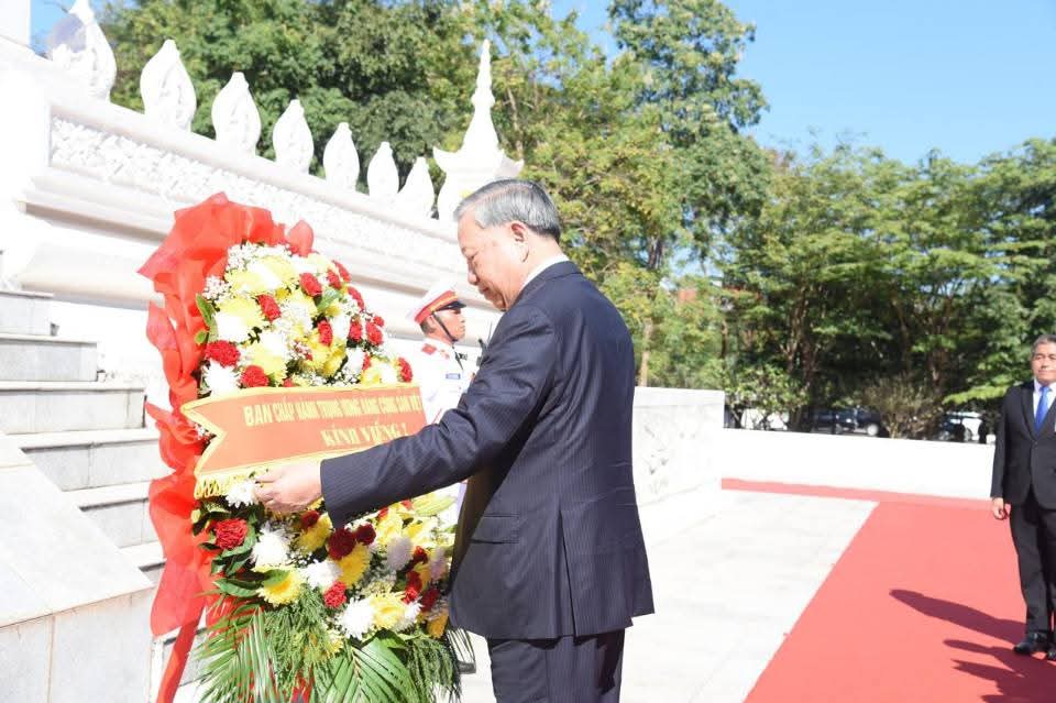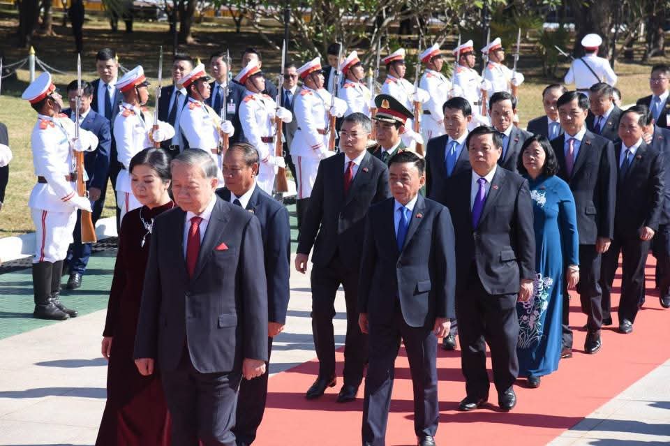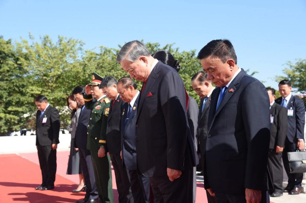 ວັນທີ 1 ທັນວາ 2025 ນີ້ ສະຫາຍ ໂຕ ເລິມ ເລຂາທິ ການໃຫຍ່ ຄະນະບໍລິຫານງານສູນກາງພັກກອມມູນິດຫວຽດນາມ ພ້ອມດ້ວຍພັນລະຍາ ແລະ ຄະນະຜູ້ແທນຂັ້ນສູງຂອງພັກ, ລັດ ແຫ່ງ ສສ ຫວຽດນາມ ໄດ້ເຂົ້າວາງພວງມາລາ ຢູ່ອະນຸສາວະລີນັກຮົບນິລະນາມ (ດາວແດງ) ນະ ຄອນຫຼວງວຽງຈັນ ໃນໂອກາດເດີນທາງມາ ຢ້ຽມຢາມ ແລະ ເຂົ້າຮ່ວມພິທີສະເຫຼີມສະຫຼອງ ວັນສະຖາປະນາ ສປປ ລາວ ຄົບຮອບ 50 ປີ ແລະ ເປັນປະທານຮ່ວມກອງປະຊຸມພົບປະຂັ້ນສູງ ລະຫວ່າງ ພັກປະຊາຊົນປະຕິວັດລາວ ແລະ ພັກກອມມູນິດຫວຽດນາມ ປະຈໍາປີ 2026 ຢູ່ນະຄອນ ຫຼວງວຽງຈັນ ສປປ ລາວ.