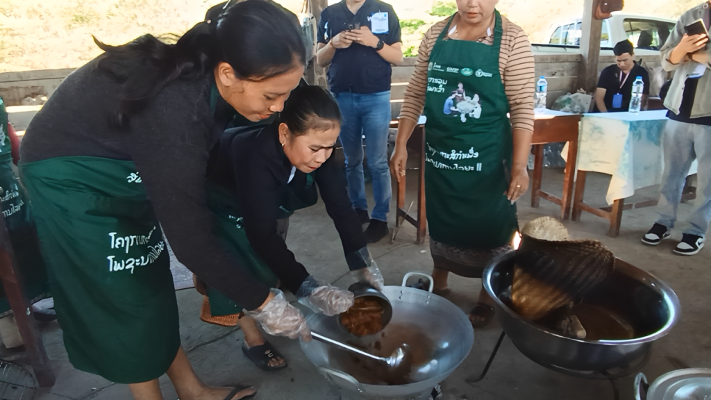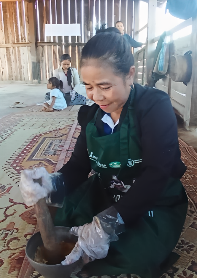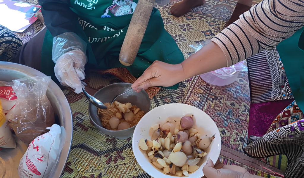 ຍາມເຊົ້າໃນສູນເຝິກຂອງໂຄງການ AFN2 ເຕັມໄປດ້ວຍບັນຍາກາດຄືກຄື້ນ ແມ່ຍິງຈາກຫຼາຍບ້ານໃນເຂດດຽວກັນ ມາພົບປະ ແລະ ແບ່ງໜ້າທີ່ກັນຢ່າງຂະຫຍັນຂັນແຂງ ບາງຄົນກຳລັງດັງໄຟ ບາງຄົນຕາກແປ້ງມັນເພື່ອນຳມາຈືນ້ປັນເຂົ້າໂຄບ ບາງຄົນກໍປຸງແຕ່ງອາຫານຢ່າງປະນີດ ທຸກການເຄື່ອນໄຫວບໍ່ແມ່ນເພື່ອການກິນຢູ່ພາຍໃນວັນດັ່ງກ່າວເທົ່ານັ້ນ ແຕ່ເປັນການແປຮູບວັດຖຸດິບທ້ອງຖິ່ນ ໃຫ້ກາຍເປັນອາຫານທີ່ສາມາດເກັບໄວ້ໄດ້ດົນ ມີມາດຕະຖານ ແລະ ສາມາດຕໍ່ຍອດເປັນລາຍຮັບໃຫ້ຄອບຄົວ.