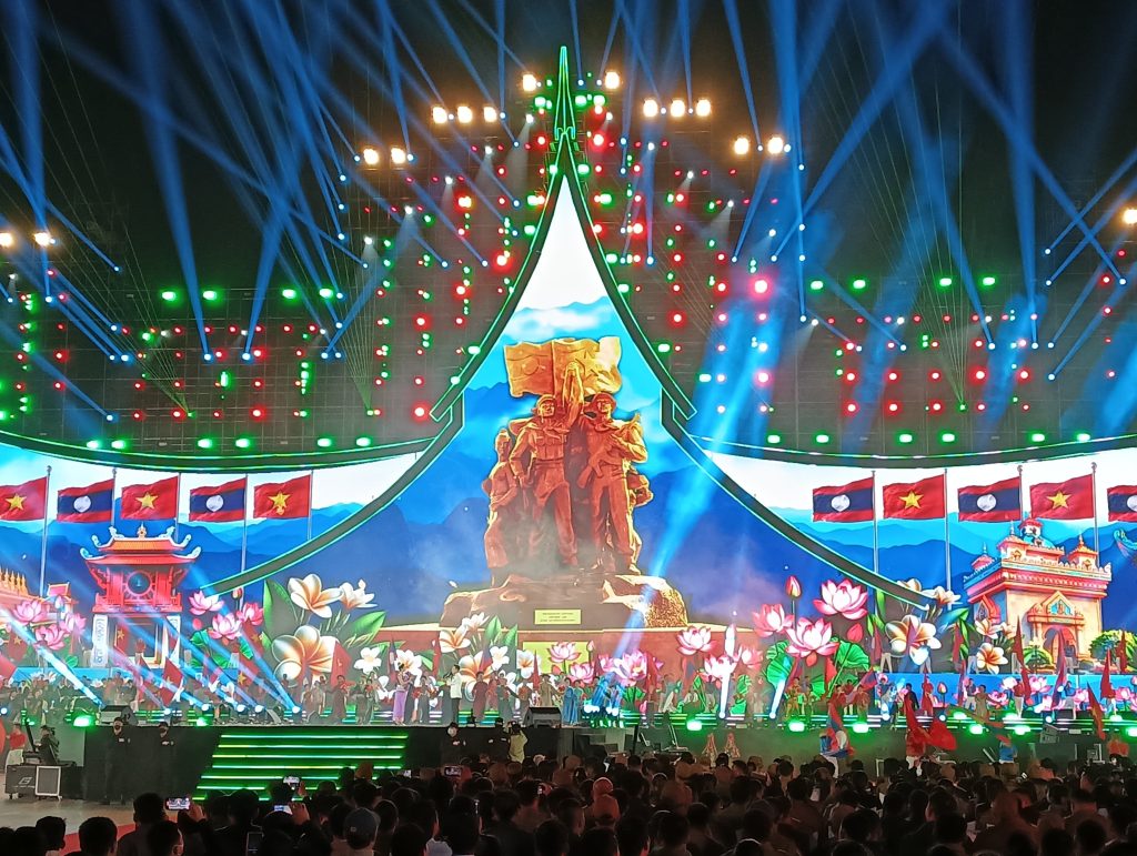ງານສະແດງສິລະປະຄັ້ງນີ້ ບໍ່ເປັນພຽງແຕ່ງານສິລະປະບັນ ເທີງທົ່ວໄປແຕ່ຄື “ບົດເພງປະຫວັດສາດ” ເປັນການຢັ້ງ ຢືນວ່າຈາກ “ຂຸມຄອງສູ້ຮົບດຽວກັນ” ໃນສະໄໝຕໍ່ສູ້ກູ້ຊາດ ມາສູ່ຍຸກສະໄໝ ໃໝ່ແຫ່ງການສ້າງສາພັດທະນາ ສອງຊາດພວກເຮົາ ຍັງຄົງຈັບມືກັນກ້າວໄປຂ້າງໜ້າຢ່າງໝັ້ນຄົງ ດ້ວຍ ການ “ເຊື່ອມຈອດທາງຍຸດທະສາດ” ທັງທາງດ້ານເສດຖະກິດ ຄົມມະນາຄົມ ແລະ ວັດທະນະທຳ ເພື່ອນໍາເອົາຄວາມຜາສຸກມາສູ່ປະຊາຊົນຂອງທັງສອງປະເທດ ຕາງໜ້າ ການນໍາພັກ-ລັດ ແລະ ປວງຊົນລາວ ບັນດາເຜົ່າ ສະແດງຄວາມຂອບອົກຂອບໃຈ ຕໍ່ການສະ ໜັບສະໜູນຊ່ວຍເຫຼືອເຊິ່ງກັນ ແລະ ກັນ ຢ່າງໝົດຈິດໝົດໃຈ ຂອງເພື່ອນຫວຽດນາມ ຖານອ້າຍນ້ອງ ທີ່ດີຕະຫຼອດໄລຍະຜ່ານມາ ສາມາດຢືນຢັນວ່າສາຍພົວພັນ ລາວ-ຫວຽດນາມ ເປັນມໍລະດົກອັນລໍ້າຄ່າຂອງສອງຊາດ ເປັນປັດໄຈພາວະວິໄສ ເປັນກົດເກນປະຫວັດສາດ ແລະ ເປັນກໍາລັງແຮງອັນໃຫຍ່ຫຼວງຂອງສອງພັກສອງລັດ ທີ່ຕ້ອງໄດ້ຮັບການເສີມຂະຫຍາຍ ສົ່ງຕໍ່ໃຫ້ບັນດາຄົນຮຸ່ນໜຸ່ມຕໍ່ໄປ ເຊື່ອໜັ້ນວ່າເຫດການສໍາຄັນທາງວັດທະນະທໍາຂອງສອງປະເທດໃນຄັ້ງນີ້ ໄດ້ປະກອບສ່ວນສໍາຄັນເປັນບາດກ້າວກະໂດດໃຫ້ແກ່ການພັດທະນາສາຍພົວພັນມິດ ຕະພາບອັນຍິ່ງໃຫຍ່ ຄວາມສາມັກຄີພິເສດ ການຮ່ວມມືຮອບດ້ານ ແລະ ຫຸ້ນສ່ວນຍຸດທະສາດ ລາວ-ຫວຽດນາມ ຫວຽດນາມ – ລາວ ໝັ້ນຄົງຂະນົງແກ່ນ ແລະ ສົດໃສ ດັ່ງດອກບົວທອງ ແລະ ດອກຈຳປາຕະຫຼອດກາລະນານ.