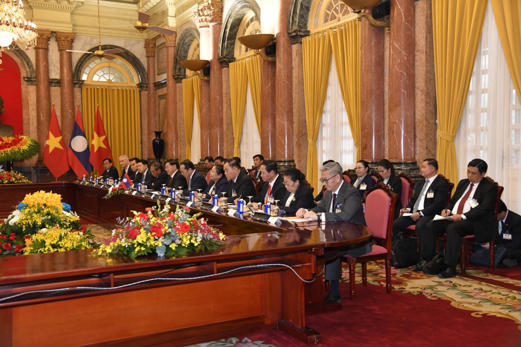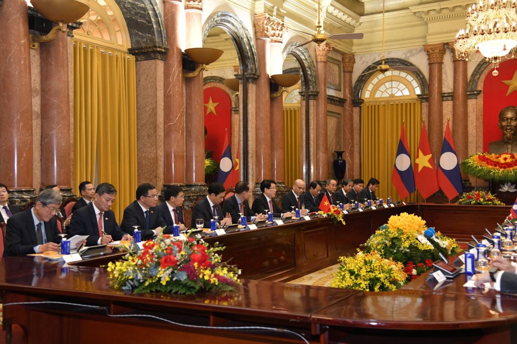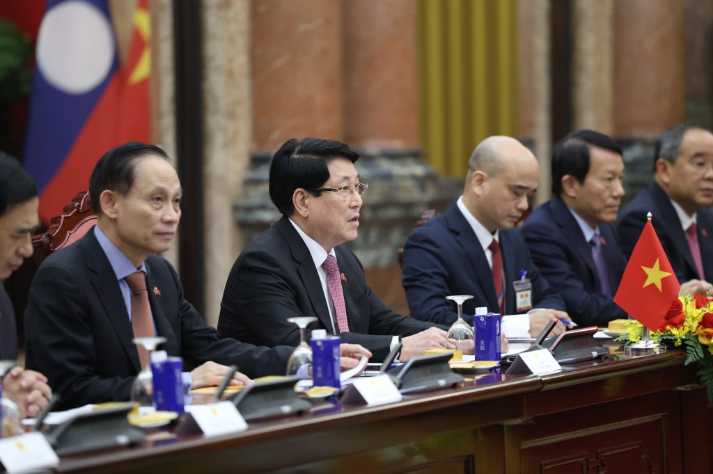 ໃນໂອກາດດັ່ງກ່າວ ສອງຝ່າຍໄດ້ຕີລາຄາສູງທີ່ເຫັນວ່າ ເຖິງວ່າສະພາບການພາກພື້ນ ແລະ ສາກົນ ຈະສືບຕໍ່ຜັນແປໄປຢ່າງສະ ຫຼັບສັບຊ້ອນ ແລະ ຄາດຄະເນໄດ້ຍາກກໍຕາມ ແຕ່ສາຍພົວພັນມິດຕະພາບ ແລະ ການຮ່ວມມືຮອບດ້ານ ລະຫວ່າງ ສອງປະ ເທດລາວ-ຫວຽດນາມ ແມ່ນສືບຕໍ່ໄດ້ຮັບການເພີ່ມພູນຄູນສ້າງ ແລະ ພັດທະນາເຂົ້າສູ່ລວງເລິກຢ່າງບໍ່ຢຸດຢັ້ງໃນທຸກຂົງເຂດວຽກ ງານ ອັນພົ້ນເດັ່ນແມ່ນການພົວພັນຮ່ວມມືທາງດ້ານການເມືອງ ທີ່ສືບຕໍ່ມີຄວາມໄວ້ເນື້ອເຊື່ອໃຈກັນໃນລະດັບສູງສຸດ ວຽກງານການຕ່າງປະເທດ ປ້ອງກັນຊາດ ແລະ ປ້ອງກັນຄວາມສະຫງົບ ສືບຕໍ່ເປັນເສົາຫຼັກທີ່ໝັ້ນຄົງໃນການພົວພັນສອງຝ່າຍ ມູນຄ່າການຄ້າສອງປະເທດ ມີການເຕີບໂຕໃນຕົວເລກທີ່ໜ້າເພິ່ງພໍໃຈ ແລະ ບັນດາໂຄງການຮ່ວມມືຍຸດທະສາດ ໄດ້ຮັບການຈັດຕັ້ງປະຕິບັດຢ່າງມີປະສິດທິຜົນ ພິເສດ ສອງຝ່າຍໄດ້ຢືນຢັນເພີ່ມ ພູນຄູນສ້າງ “ສາຍພົວພັນມິດຕະພາບອັນຍິ່ງໃຫຍ່ ຄວາມສາມັກຄີພິເສດ ການຮ່ວມມືຮອບດ້ານ ແລະ ຫຸ້ນສ່ວນຍຸດທະສາດ” ໃຫ້ນັບມື້ໄດ້ຮັບການຂະຫຍາຍຍິ່ງໆຂຶ້ນ.