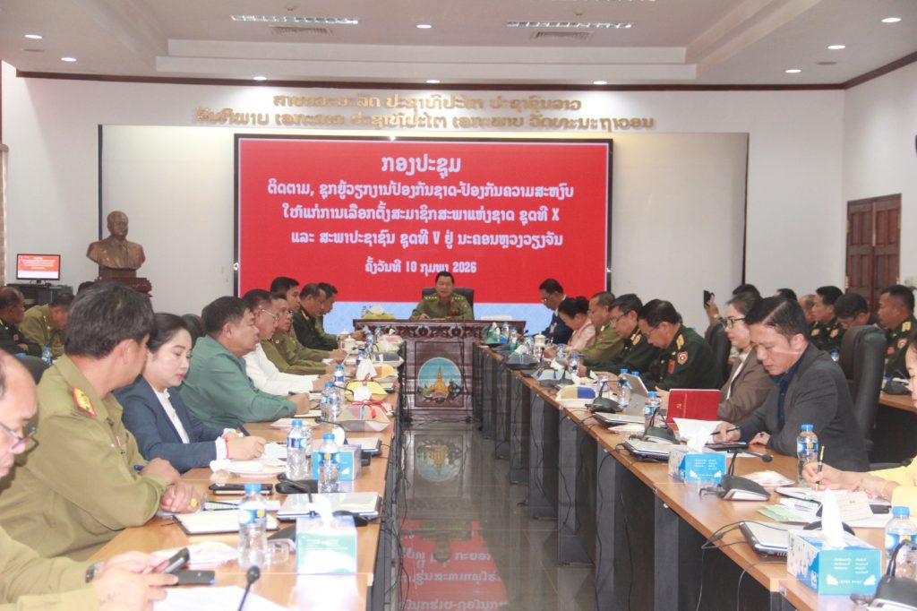 ໃນໂອກາດນີ້ ທ່ານ ພົທ ວັນທອງ ກອງມະນີ ໄດ້ຕາງໜ້າໃຫ້ອະນຸກໍາມະການປ້ອງກັນຊາດ-ປ້ອງກັນຄວາມສະຫງົບ ໄດ້ເນັ້ນໜັກໃຫ້ຄະນະພັກ-ຄະນະນໍານະຄອນຫຼວງວຽງຈັນ ເພີ່ມທະວີຄວາມຮັບຜິດຊອບໃນການປົກປັກຮັກສາແນວທາງນະໂຍບາຍຂອງພັກ-ລັດ ແລະ ສະກັດກັ້ນທຸກກົນອຸບາຍທີ່ຫວັງມ້າງເພທຳລາຍການເລືອກຕັ້ງ ຕ້ອງມີແບບແຜນວິທີເຮັດວຽກທີ່ທັນສະໄໝ ມີລະບຽບວິໄນເຂັ້ມງວດ ແລະ ເສີມຂະຫຍາຍມູນເຊື້ອຮັກຊາດຂອງກຳລັງປະກອບອາວຸດ ເພີ່ມທະວີການເຄື່ອນໄຫວວິຊາສະເພາະ ເພື່ອຕິດຕາມ ແລະ ເກັບກຳຂໍ້ມູນກຸ່ມຄົນບໍ່ດີ ທີ່ອາດສ້າງຄວາມບໍ່ສະຫງົບໃນທຸກຮູບແບບ ສຸມໃສ່ການຄຸ້ມຄອງສື່ສັງຄົມອອນລາຍ ການເຂົ້າ-ອອກເມືອງ ການຄຸ້ມຄອງສຳມະໂນຄົວ ແລະ ແກ້ໄຂບັນຫາປະກົດການຫຍໍ້ທໍ້ຕ່າງໆ ຕາມເສັ້ນທາງສັນຈອນ ເອົາໃຈໃສ່ຄຸ້ມຄອງ ແລະ ປ້ອງກັນເຂດຊາຍແດນຢ່າງຮັດກຸມ ເພື່ອຮັບປະກັນບໍ່ໃຫ້ມີເຫດການບໍ່ສະຫງົບທາງການເມືອງເກີດຂຶ້ນເພີ່ມທະວີຄວາມເປັນເອກະພາບ ແລະ ການປະສານສົມທົບຢ່າງແໜ້ນແຟ້ນ ລະຫວ່າງກຳລັງປ້ອງກັນຊາດ-ປ້ອງກັນຄວາມສະຫງົບ ກັບ ຄະນະກຳມະການເລືອກຕັ້ງທຸກຂັ້ນ ແລະ ການປ່ອນບັດລ່ວງໜ້າ ເນັ້ນໜັກໃຫ້ກວດກາຄວາມພ້ອມທັງໝົດ ສໍາລັບການປ່ອນບັດລ່ວງໜ້າຂອງກຳລັງປ້ອງກັນຊາດ-ປ້ອງກັນຄວາມສະຫງົບ ໃນວັນທີ 14 ກຸມພາ 2026 ນີ້ ໃຫ້ຖືກຕ້ອງຕາມຂັ້ນຕອນທີ່ກຳນົດໄວ້ ທັງໝົດນີ້ກໍເພື່ອຮັບປະກັນໃຫ້ການເລືອກຕັ້ງສະມາຊິກສະພາແຫ່ງຊາດ ແລະ ສະມາຊິກສະພາປະຊາຊົນຂັ້ນແຂວງໃນຄັ້ງນີ້ ດຳເນີນໄປດ້ວຍບັນຍາກາດທີ່ສະຫງົບ ປອດໄພ ແລະ ບັນລຸຕາມຈຸດປະສົງຄາດໝາຍທີ່ວາງໄວ້ຢ່າງຈົບງາມ.